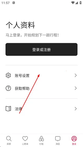 1、打开爱彼迎APP,点击底部登录选项,进入个人资料页面。
