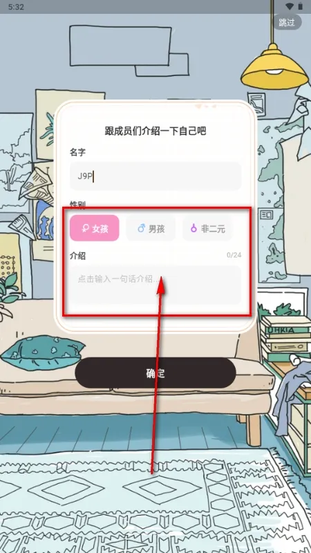 3、点击选择创建我们的OC角色,输入姓名,性别以及个人介绍;