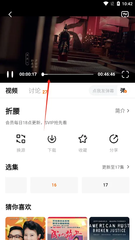 5、观看进度保存:自动保存观看进度,下次打开自动跳转,无需担心找不到观看位置。