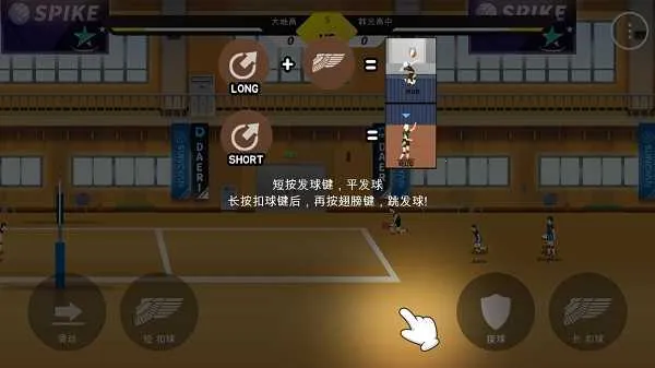 发球系统支持双模式:短按执行稳定平发球;长按扣球键后触发跳跃动作,再按翅膀键完成高抛跳发,兼具压迫性与变化性。
