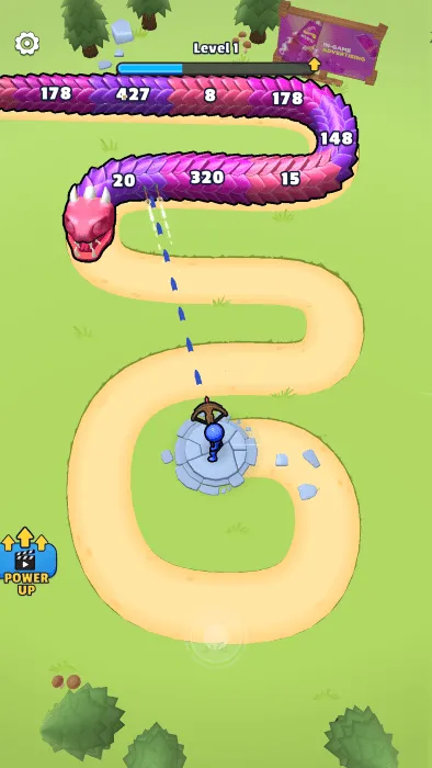 成长系统合理:资源利用高效,让玩家有持续玩下去的动力。快速关卡进阶,抵御巨蛇提升等级,解锁装备与强大技能超带感。