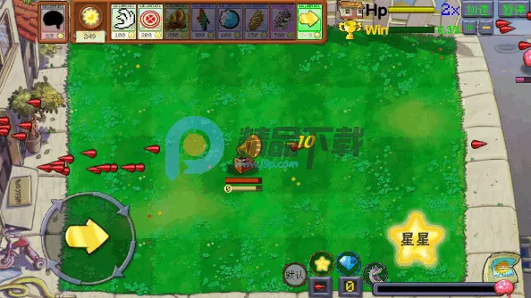 2、策略道具玩法游戏中设有丰富道具,如能量豆能短暂提升角色或植物攻击力,炸弹可瞬间清除大片僵尸。玩家要根据僵尸类型和数量,合理选择道具使用时机。还能升级角色与植物,增强其属性和技能,通过巧妙策略搭配,在激烈战斗中取得胜利。