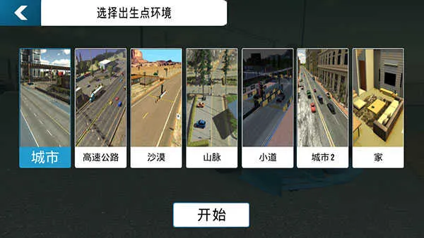 5、若选择【单人游戏】模式,则需先设定出生地点及环境类型,自定义驾驶起点。